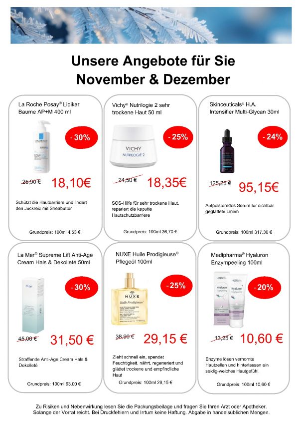 Immer auf dem neuesten Stand: Hier finden Sie Informationen zu unseren Aktionen, wechselnden Monatsangeboten, besonderen Kosmetikaktionen und weitere Nachrichten.